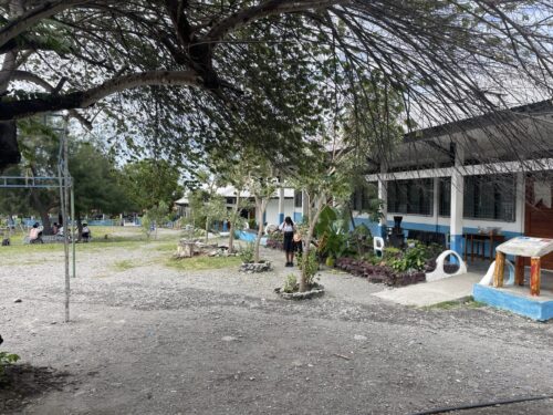 内陸に入っていく場所にあるんだけれど、かなり道は悪いし、周りの家も貧しそう…これが東ティモールの平均なんだろうけど、心が痛む。
