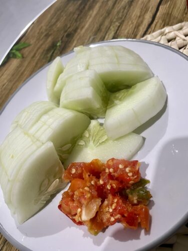 たっぷりのきゅうりに、ちょこっとのai-manasでいただきました。