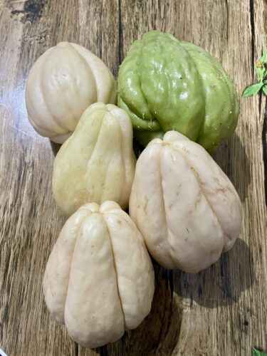 ChatGPT曰く、”ハヤトウリ”らしい。緑色と白色でもちょっと差があるみたいです。