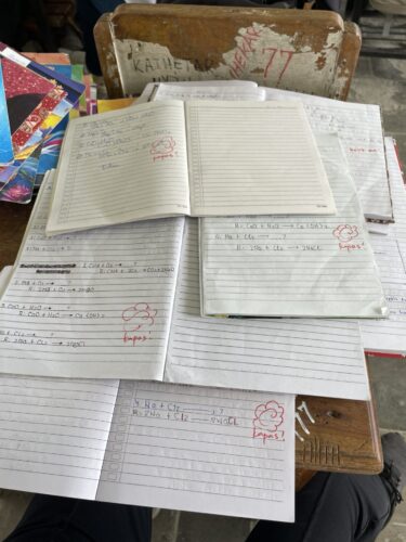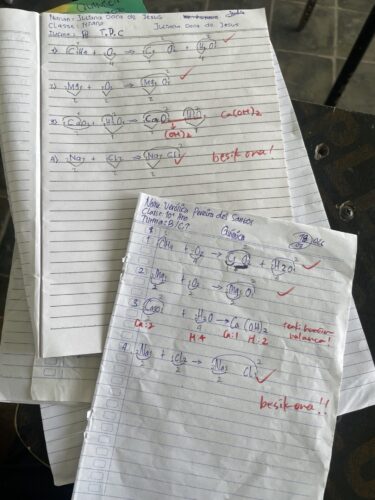 例えば、初回はそもそも生成物が間違っていたりすることが多かったのですが、2回目以降は生成物に近いものは書けるけれど、電荷について理解できていなかったり、その後の係数合わせで躓く生徒が増えました。